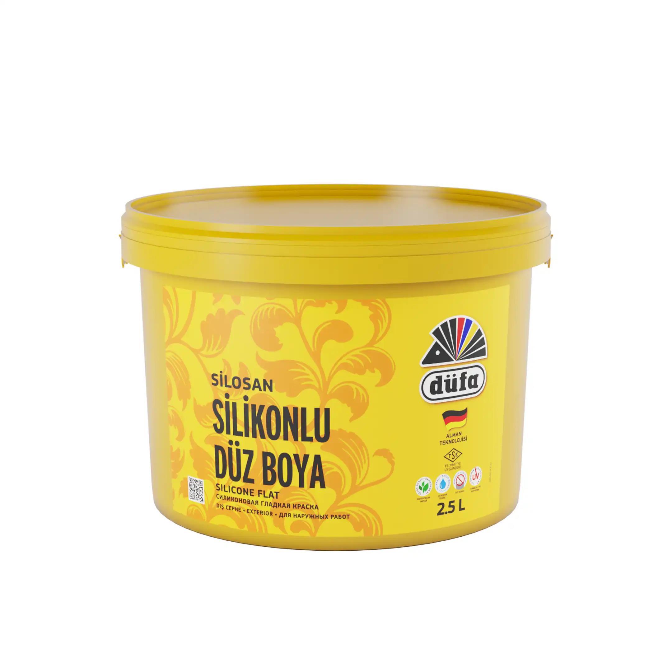 Uygulama yapılacak yüzeyler kuru, temiz ve tozdan arındırılmış olmalıdır. Eski ve kabarmış boyalı yüzeyler kazınarak temizlenmelidir. Yeni sıvalı yüzeyler uygulama öncesi en az 4 hafta beklenmelidir. Bozuk ve gevşek yüzeyler ile kılcal çatlaklar içeren yüzeyler “Düfa Akrilik Dış Cephe Macun” ile macunlanmalıdır. Düzeltme işlemini takiben son kat boya sarfiyatını azaltmak, boyanın yüzeye yapışmasını arttırmak ve renk değişikliklerinde astar olarak tek kat “Silosan Silikonlu Örtücü Astar” veya “Silosan Silikonlu Beyaz Astar” kullanılması tavsiye edilir. Uygulama yapılacak yüzeyler kuruma problemlerinin yaşanmaması için yağış ve dona karşı korunmalı, aşırı rüzgârlı havalar ile direk güneş ışığı alan yüzeylerde uygulama yapılmamalıdır. 35°C üzerindeki sıcaklıklarda ve saat 12–16 arası uygulama yapılacaksa binaların güneş görmeyen yüzeyleri tercih edilmelidir. “Silosan Silosil Silikonlu’’ astar uygulaması yapılmış yüzeylere su ile en fazla % 10 oranında inceltilerek rulo veya fırça ile 2 kat halinde uygulanır. Katlar arasında bekleme süresi 5–6 saattir (ortam sıcaklığına göre farklılık gösterebilir). Uygulama sıcaklığı 5˚C ile 35˚C arasında olmalıdır.