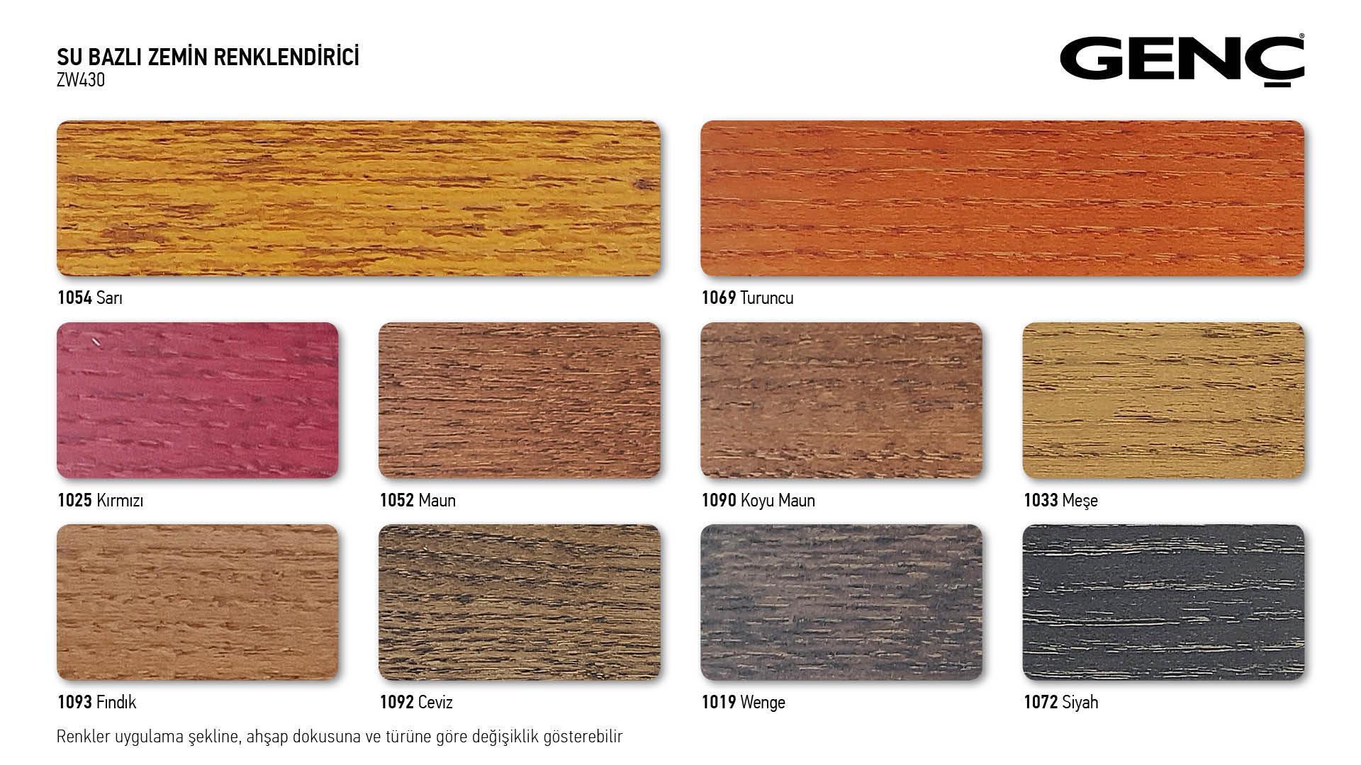ZW430.00 ahşap yüzeyleri renklendirmek amacıyla kullanılan, su bazlı, konsantre zemin renklendiricidir. Yüksek renklendirme gücüne sahip ve uygulanan yüzeyde homojen görünüm sağlayan, dekoratif renklendiricidir. Sprey, fırça ve bez ile uygulanabilir. Su veya aseton-su karışımı ile seyreltilebilir. Su ve solvent bazlı her türlü sonkat ürünler için uygun zemin oluşturur. İç mekan kullanımı için mobilya ve dekorasyon işlerinde, ahşap yüzeylerin renklendirilmesinde ve masif-kaplama gibi her türlü ahşap yüzeylerde dekoratif bir görünüm sağlamak için kullanılır. Dış mekan için tavsiye edilmez.