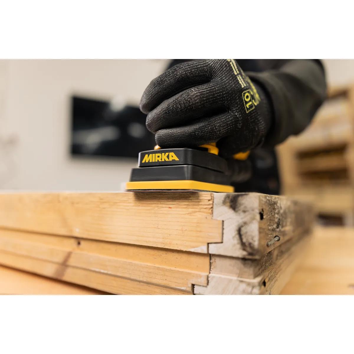 Mirka® DEOS II 343, Mirka® DEOS elektrikli titreşimli zımpara makineleri serisindeki en kompakt zımpara makinesidir. Özellikle ulaşılması zor yerlerde pencere, kapı ve çerçevelerin zımparalanması ve ahşap dolgu üzerinde düzeltme çalışmaları yapılması veya detay çalışmaları yapılması için tasarlanmıştır.
