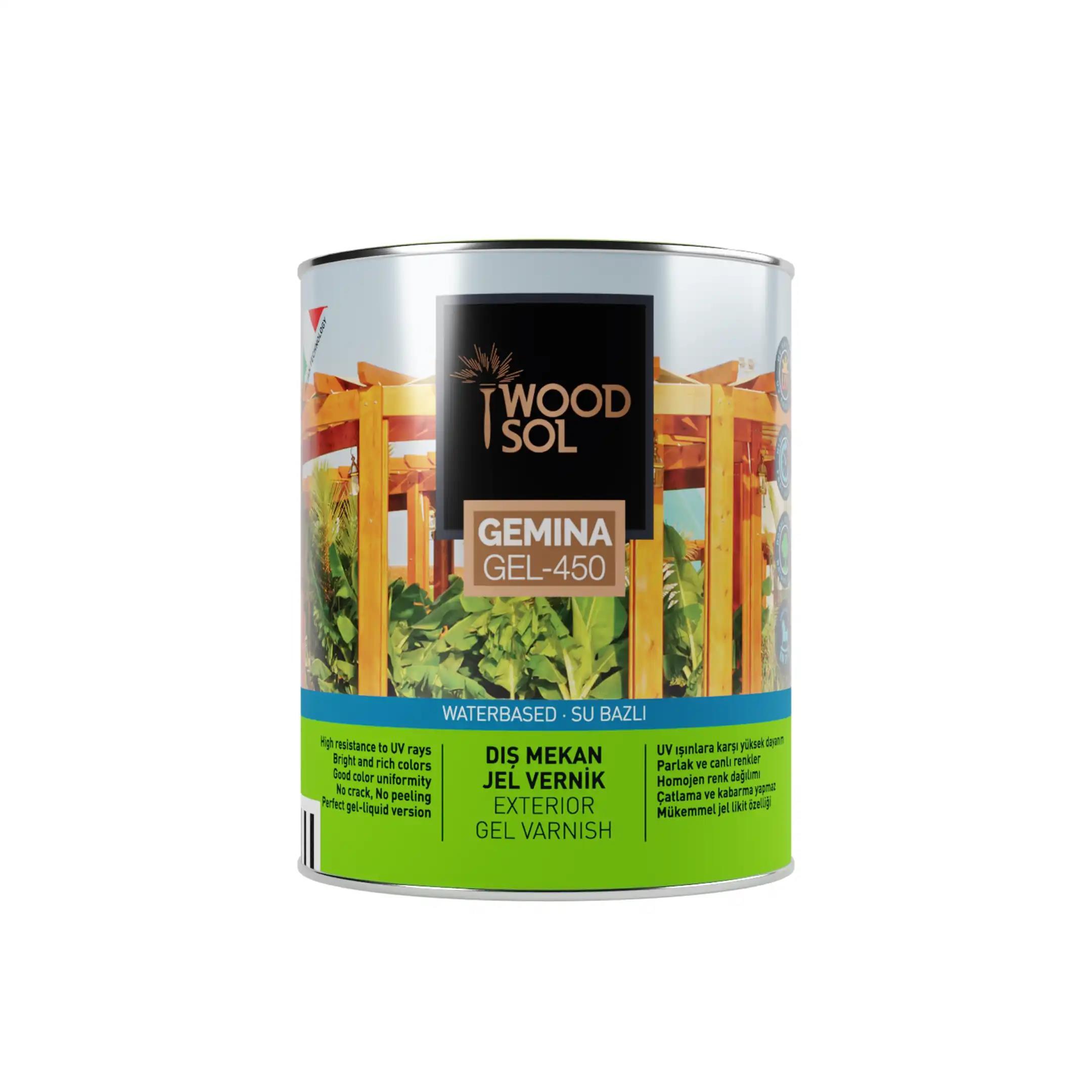 GEMINA GEL-450 Jel Vernik; dış cephe ahşaplar için su bazlı verniktir. Yarı şeffaf bir görünümü vardır. Ara kat olarak veya son kat olarak kullanılabilir. Sprey tabancası ve fırça ile kolaylıkla uygulanır. Ahşap oyuncaklar, ahşap paneller, ahşap kapı, çardak, pergola, panjur ve pencerelerde kullanılabilir.