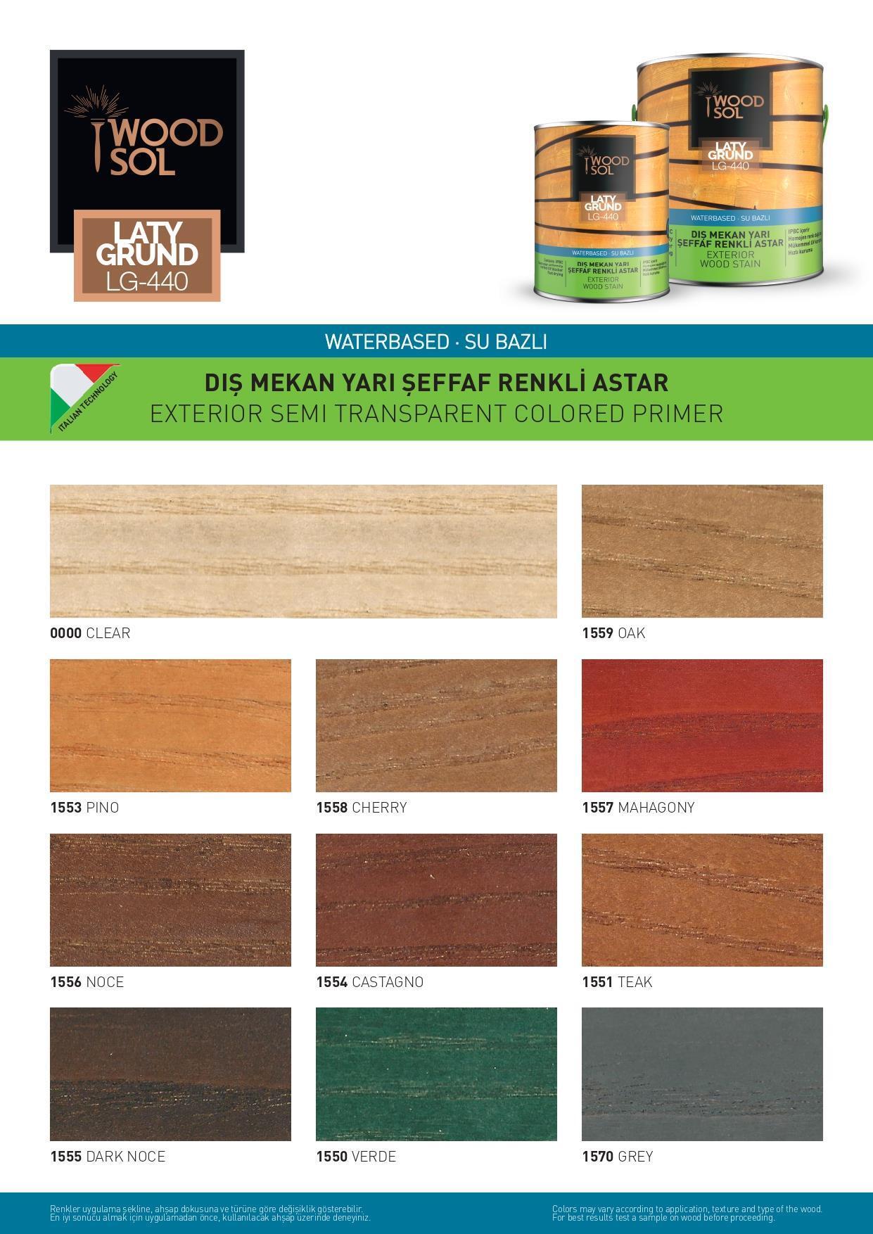 LATYGRUND LG-440 Yarı Şeffaf Renkli Astar su bazlı olup uygulandığı yüzeye yarı şeffaf bir görünüm verir. Boya öncesi alt kat olarak kullanıma uygundur. Tomruk evlerdeki cephe kaplamaları, ahşap paneller, ahşap kapı, çardak, pergola ve pencerelerde kullanılır. LATYGRUND LG-440 son kat verniklerin altına astar katı olarak uygulanabilir. Sprey tabancası ve fırça ile kolaylıkla uygulanır.