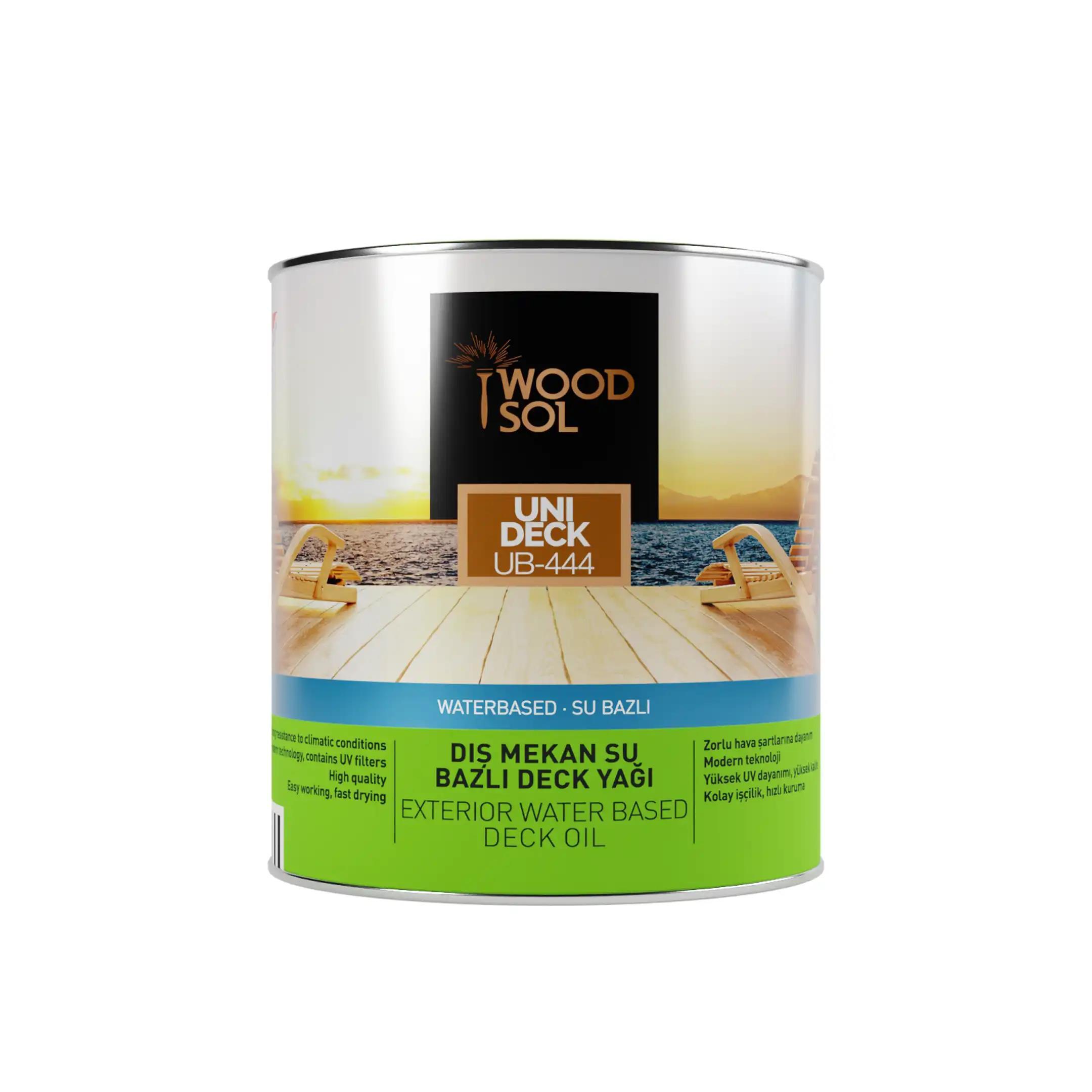UNIDECK UB-444 Su Bazlı Deck Yağı; son kat olarak kullanıma uygun dış mekan dayanımlı su bazlı yağdır. Ahşap cephe kaplamaları, deckler, ahşap paneller ve bahçe mobilyalarında kullanılır. Sprey tabancası, fırça, rulo veya duşlama yöntemi ile kolaylıkla uygulanır.